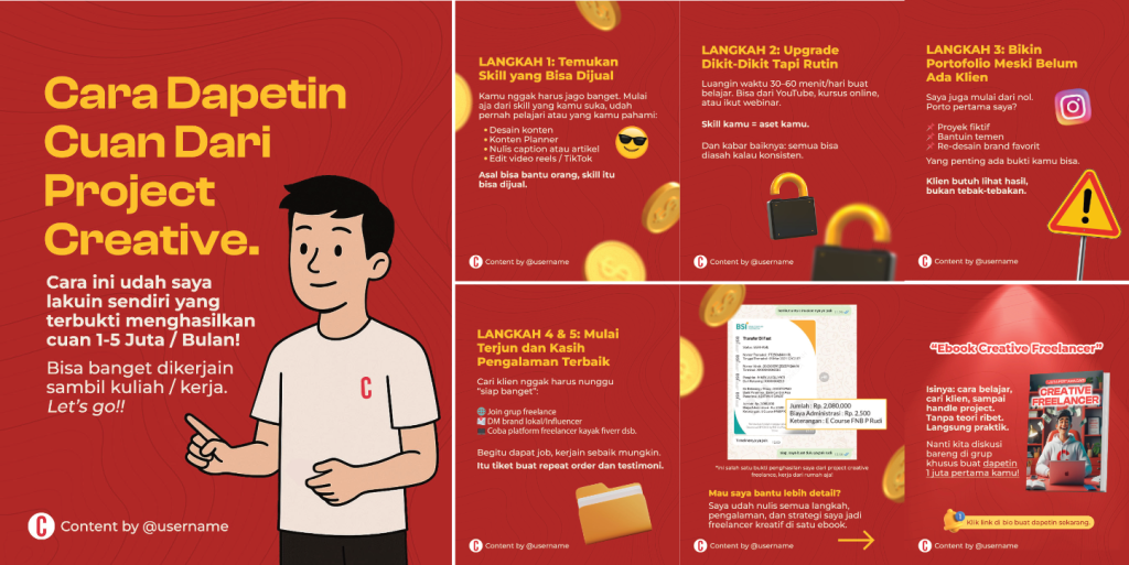 - Publishing & Optimization – jadwal posting, evaluasi performa, dan improvement